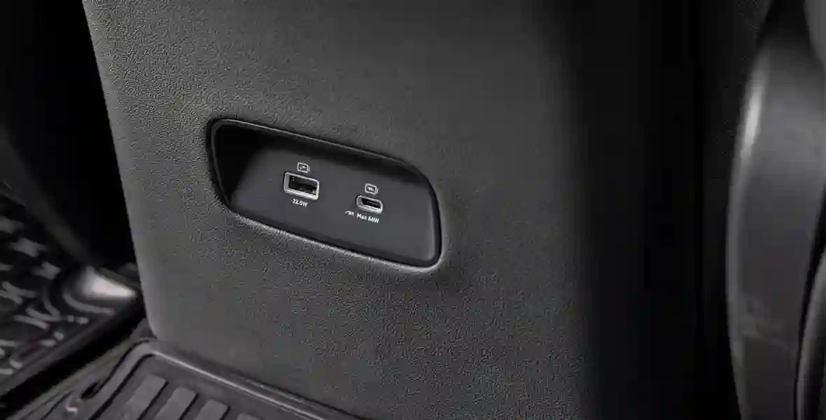 Под экраном — две ниши для беспроводной зарядки мобильных устройств (ее мощность — 40 Вт), USB-розетки и гнездо на 12 В упрятаны на второй ярус. В передних креслах есть функция массажа. Но зимний пакет в этом «Эволюте» наконец-то распространился и на задние сиденья.