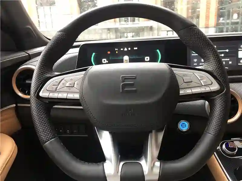 В салоне тестовой машины – сочетание кожзама абрикосового цвета и темного пластика с вставками под алюминий. Материалы недорогие, но благодаря грамотному цветовому сочетанию выглядят дорого. Два одинаковых по размеру экрана, 10,25-дюймовых – приборная панель и экран мультимедиа в центре передней панели. Есть блютус, нет интеграции со смартфоном, но можно «зеркалить» экран смартфона через приложение Carbitlink. Немного странно смотрится панорамная крыша c эффектом «звездное небо» – днем, когда солнцезащитная шторка открыта. Кажется, к стеклу крыши снаружи прилипло что-то, вроде звездочек от детской хлопушки.